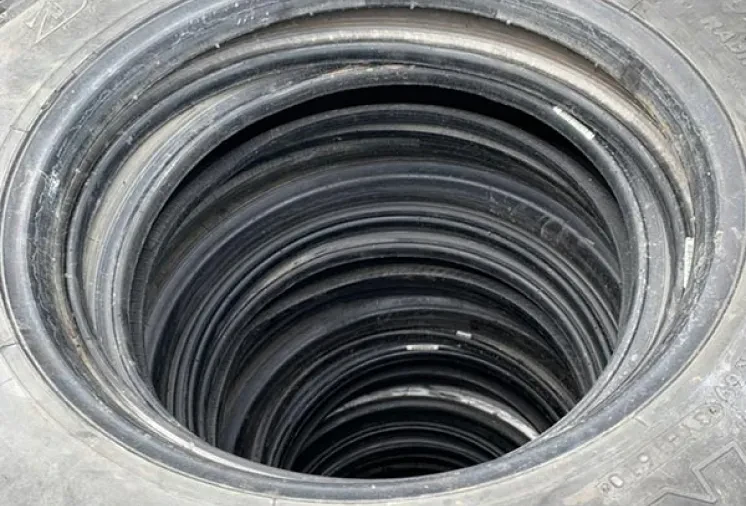 そこでタイヤの中に入れることで輸出費用は変わらずに2倍、3倍の本数をコンテナに積み込むことが可能になります。